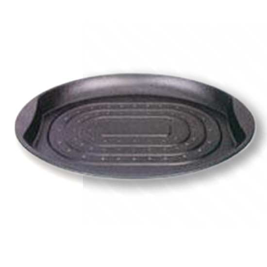 The frying pan here is designed in a round shape, with handles on two sides. Its surface is plated with a non-sticky layer for easy cleaning. The embossed patterns can accelerate heat radiation for quick cooking.