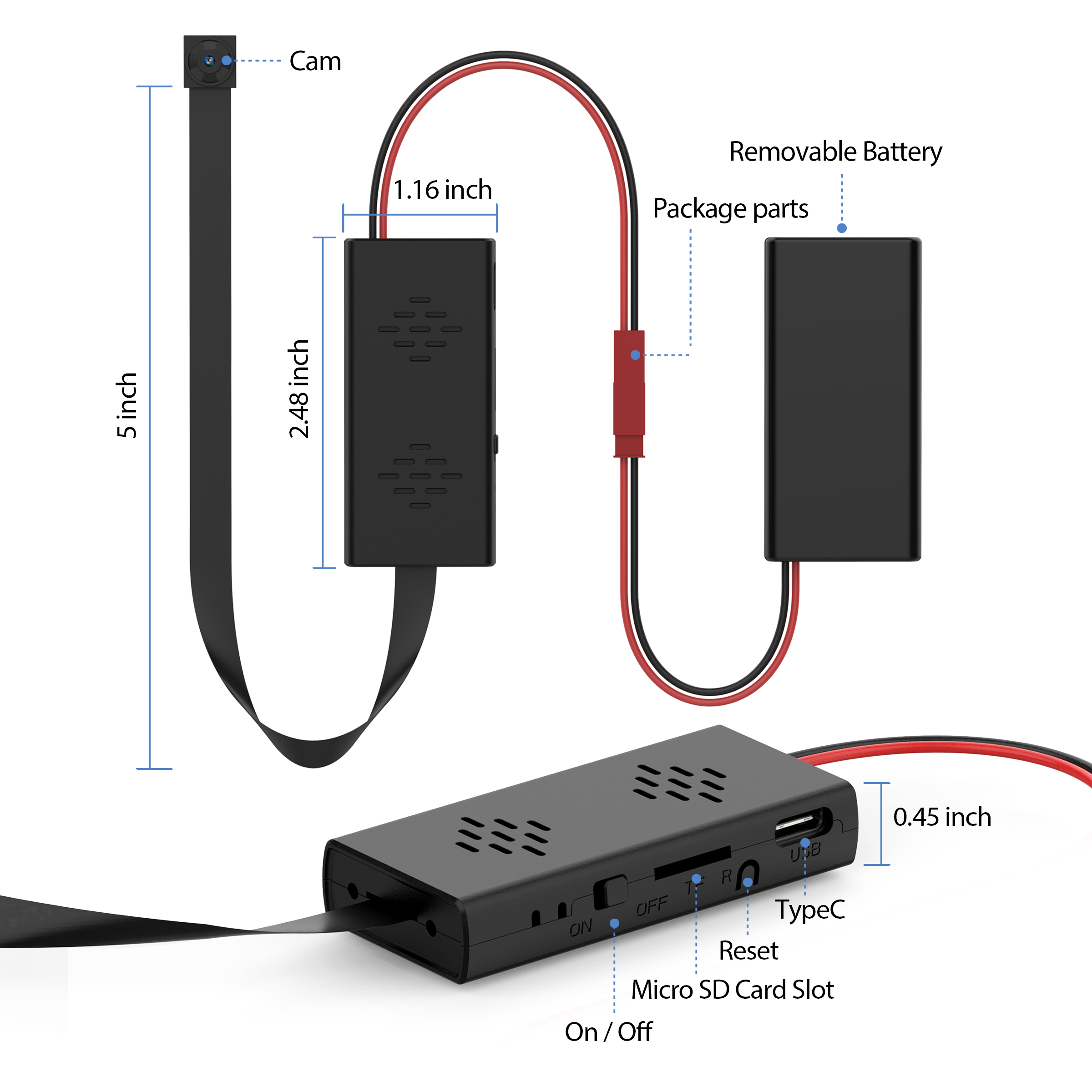 Super mini and Easy Use: Mini lens, smaller than a quarter coin. No need for any settings, it can be used immediately after booting up, no tech knowledge required. Not relying on WiFi and APP means you can carry and use it wherever you are. The mini camera could be placed to almost anywhere thanks to its mini lens design.