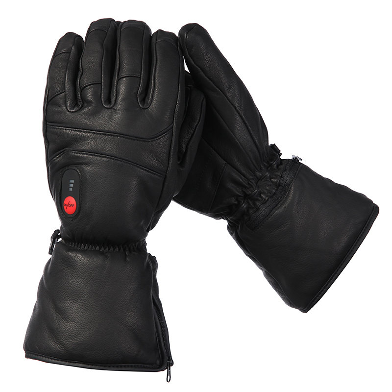 Full Leather 7.4V Rechargeable Lithium Battery Heated Gloves with Fingers and Back Hand Heating