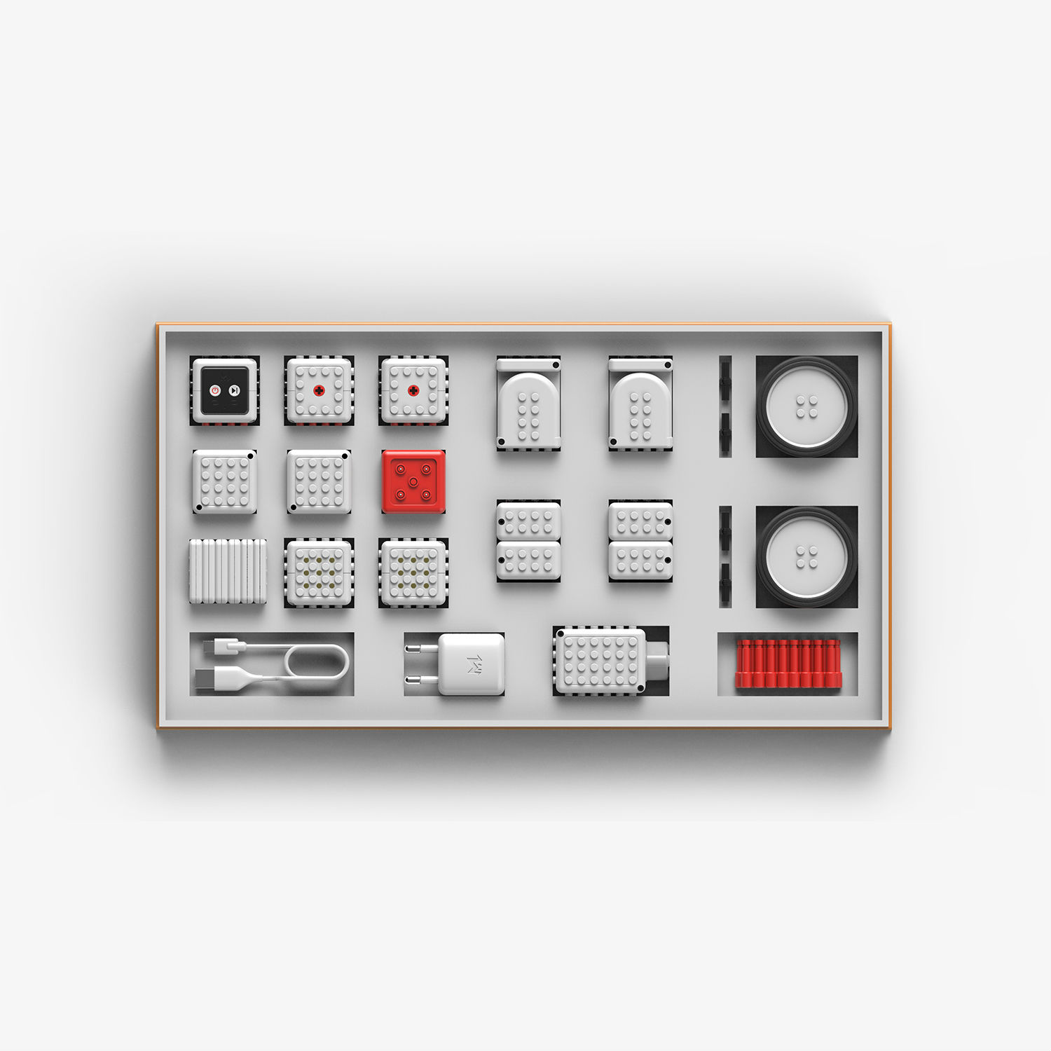 Window Cube x 1, Motor Cube x 2, Bridge x 6, Lighting Cube x 2, Angle Cube x 2, Rotation Cube x 2, Sub Cube x 2, Cannon Cube x 1, Cannon Bombs x 20, Wheel Set x 4, Charger Cube x 1, User Manual x 1, Charger Set x 1