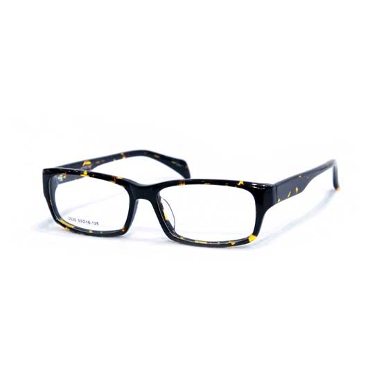 This is a pair of full-rim eyeglasses with a unisex design. It features a high-quality acetate frame for enhanced durability and lightweight. The yellow patterns add a splash of color to this pair of black eyeglasses.