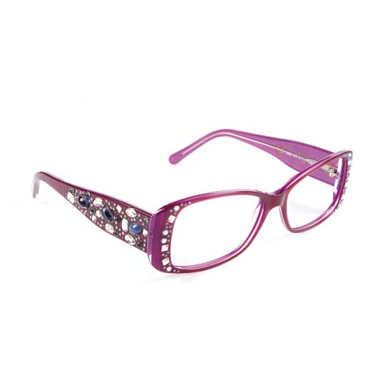 This is a pair of glasses featuring a fashionable appearance with an eye-catching pink finish. The rims and temples are exquisitely adorned with shimmering stones to offer a touch of uniqueness and elegance. These stylish glasses are surely an excellent accessory for your daily outfit.