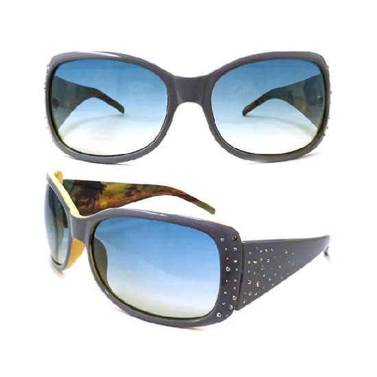 This is a pair of fashionable sunglasses with a full-rim design. The plastic frame comes with charming rhinestones for an attractive look. With this pair of well-designed sunglasses, it is easy to mix and match your outfits.