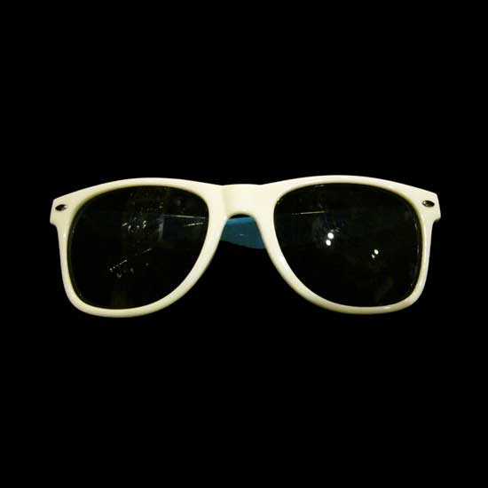 This is a pair of full-rimmed sunglasses that is made with white-toned frame for a clean and neat look. Made with a nose saddle bridge, these sunglasses offer maximum wearing comfort. This pair of sunglasses prevents bright sunlight from discomforting the wearer's eyes.