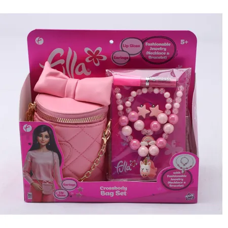 Fulla Crossbody Bag Set w/ Fashion Jewelry Necklace and Bracelet, Lip Gloss & Earrings.