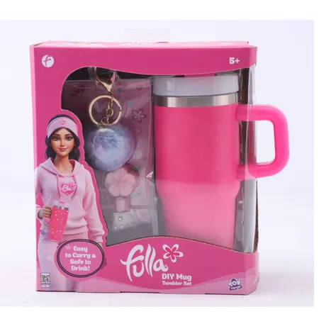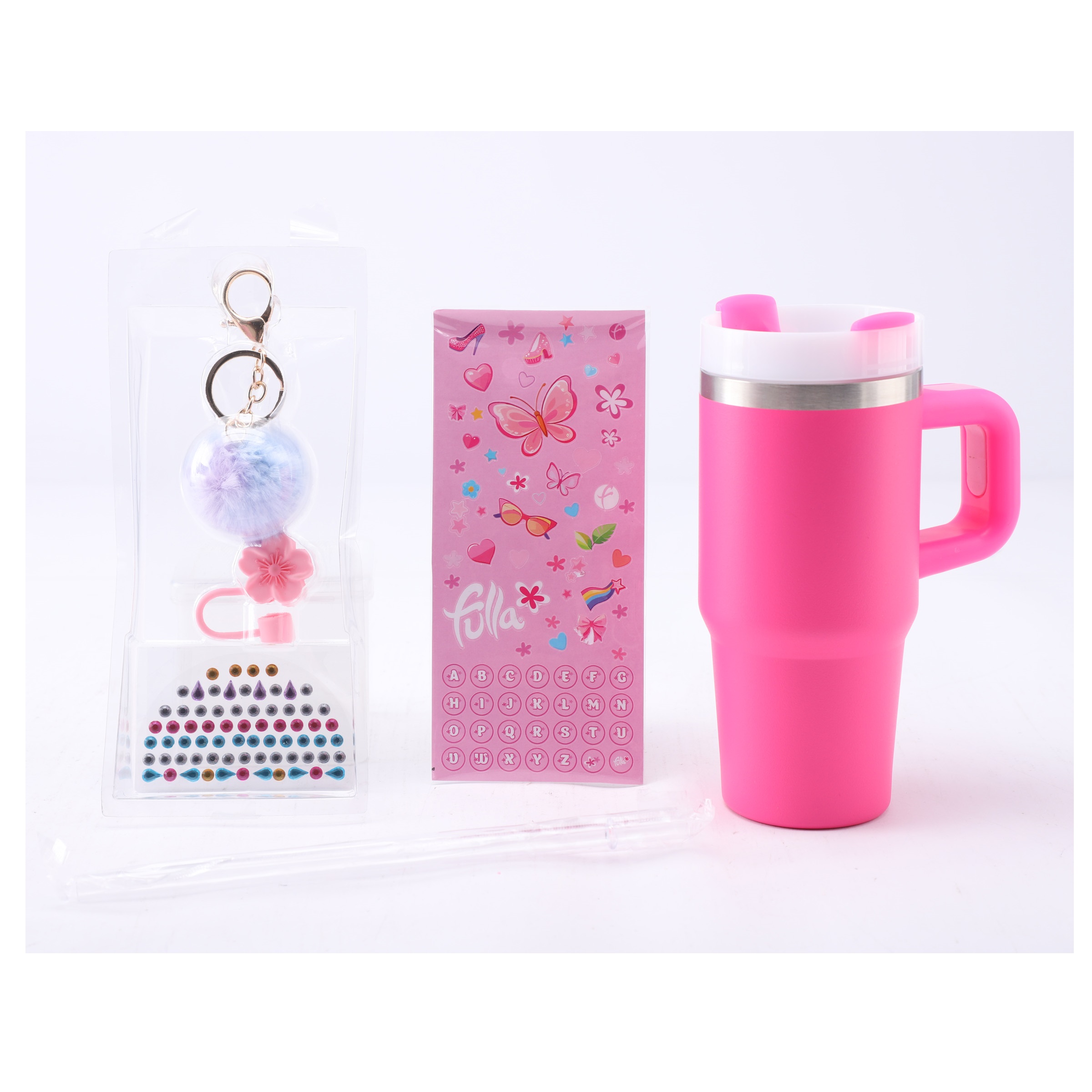 The Fulla DIY Mug Tumbler capacity 14.oz (420ml) with a styling Hairball and Pendant shaped straw stopper. DIY your own cup with the gem and sticker provided.