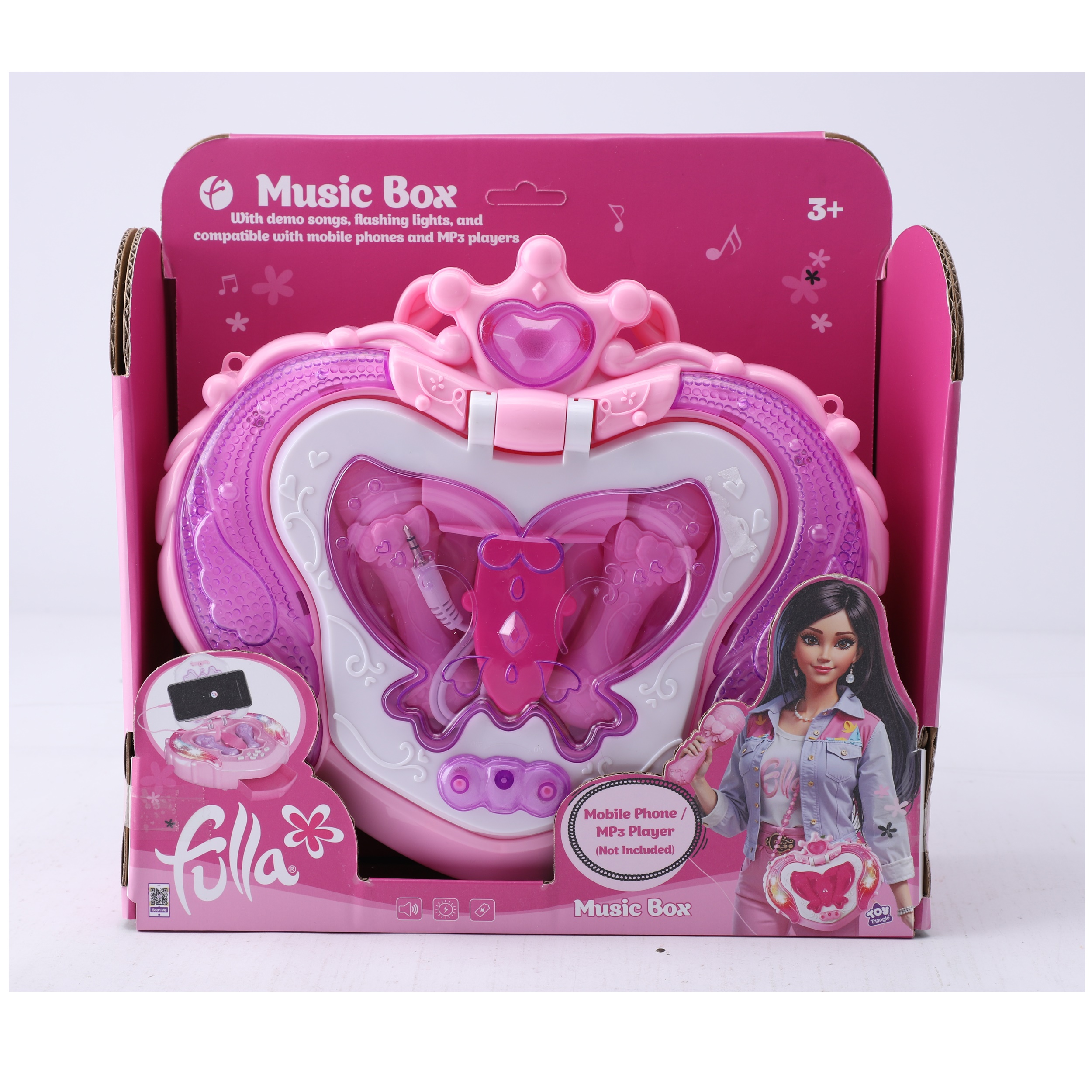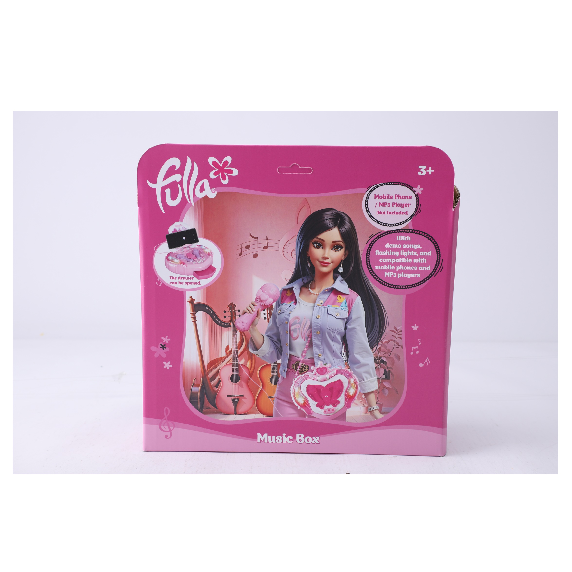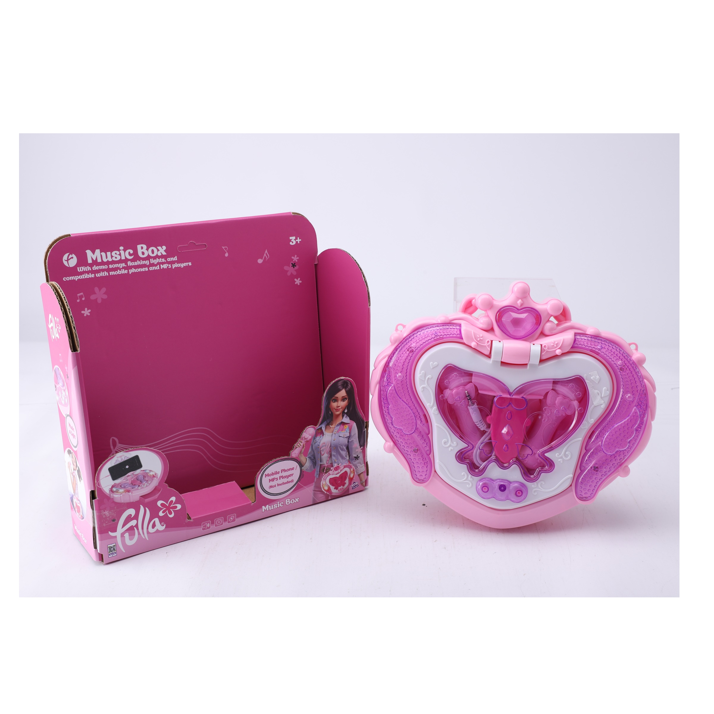 Fulla Music Box with demo songs and flashing lights, compatible with mobile phone and MPS player (not included)