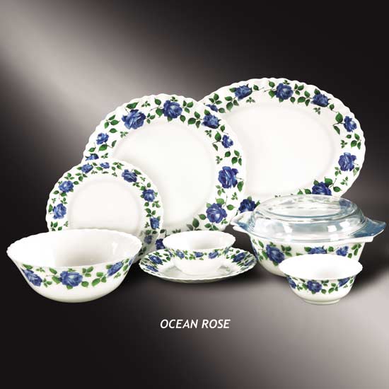 The dining set features tempered opal glass with high strength. All items come with wavy rims embellished by rose patterns for an elegant style. This is an ideal set of dining ware for restaurants.