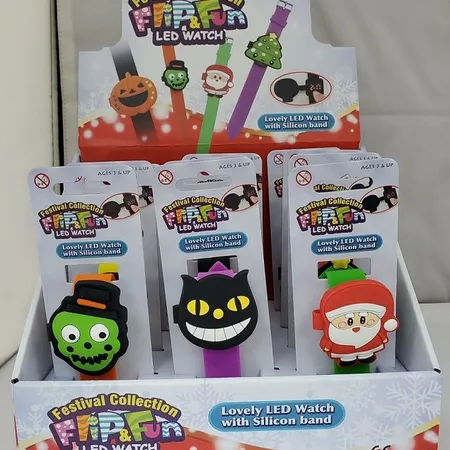 Fun fliptop watch case, 2D embossed pattern on top piece, LED module with china battery.