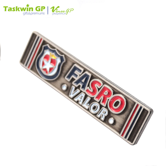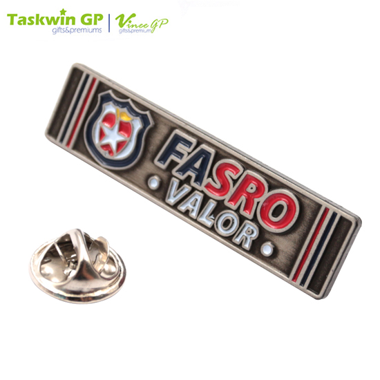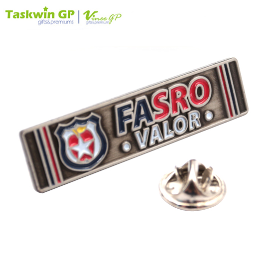 Decorate jackets, shirts, backpacks and more with this metal lapel pin. It can be designed with your logo and has an antique nickel-plated exterior. This lapel pin has a butterfly clutch at the back and offer simple and secure attachment.