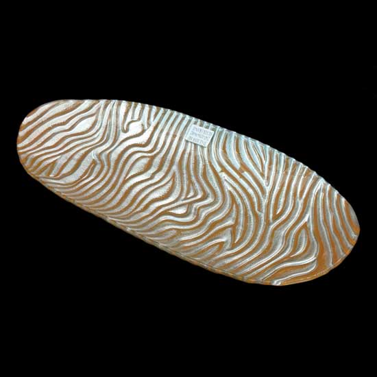 This featured fused glass decoration comes in a charming oval shape. The attractive curved stripes resemble landscapes with river. This interesting glass decoration lends natural and urban charm to your home.