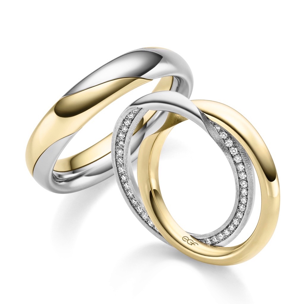 Two individual rings are fused into a flawless, inseparable unity – a symbol of the power of love, harmony, and togetherness. Each design in this collection consists of two independent rings that move freely yet can never be separated. In a special position, the rings align to form a familiar, elegant ring shape. When worn on the finger, their secret is revealed only by a barely perceptible line. Once removed, the two parts of the ring can be opened, unveiling two hidden surfaces that can be engraved with a deeply personal message.