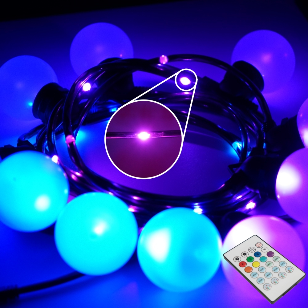 - (1)10PCS G40 frosted fog shaped PET plastic bulb, each lamp holder is equipped with a 5050 RGB SMD LED (non replaceable).