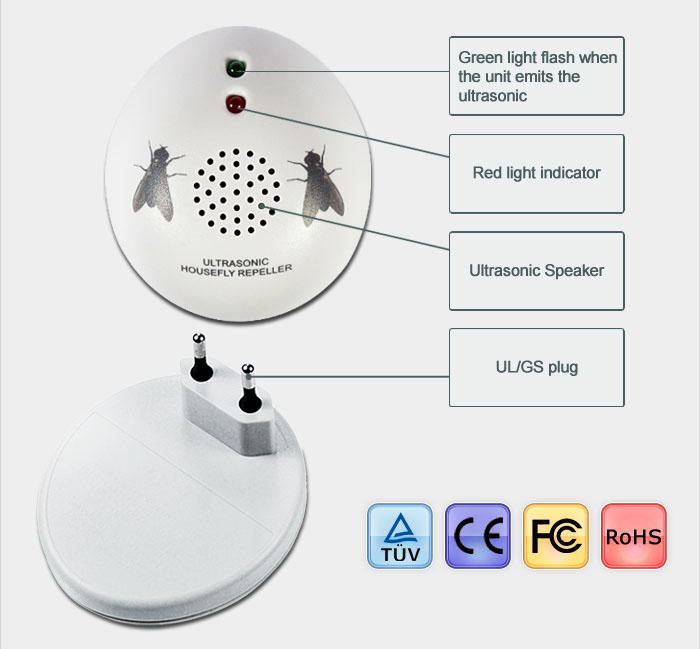 1.Theory  Ultrasonic housefly repeller emits ultrasonic waves to make stimulate the nervous system of flies and influence its behavior, and make them feel discomfort and get away.