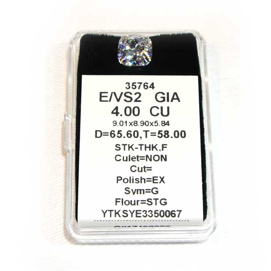 This cushion shaped diamond is certified by GIA for its exceptional quality. The sparkling gemstone is ideal for application in the finest types of jewelry. Its astounding glamour captivates many.