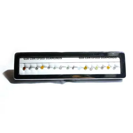 Featured here is a box of GIA certified diamonds in assorted colors and cuttings. The top-grade natural diamonds boast high color and clarity grades. Add glamor and shine to your jewelry design with these stunning diamonds.