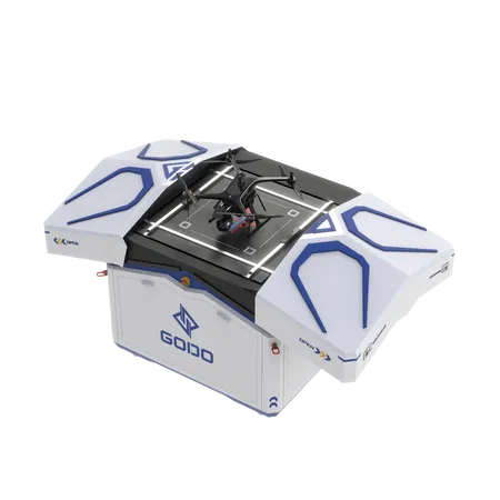 GODO A170 automatic dock achieves drone storage and management, all-weather/all-day unattended, and quick response. A170 is equipped with 4 sets of drone batteries, which are automatically charged and maintained to meet the continuous flight requirements. The high precision robotic arm can automatically replace the batteries for the drone , the drone can takeoff in 1 minute, and responds to events rapidly. This product is equipped with a meteorological monitoring station to sense climate conditions such as wind speed and rainfall in real time, which can ensure safe flight of the drone. Built-in air conditioner for constant temperature and humidity, the product also has features such as UPS emergency power supply, intelligent standby, fault self-test,etc, to ensure stable operation of equipment in various complex conditions.