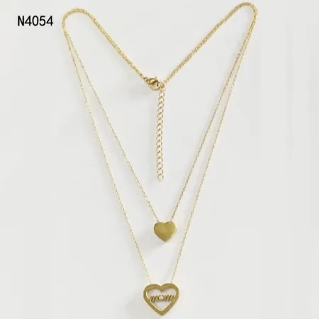 Gold Plated Heart & Mom Necklace