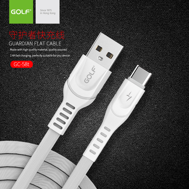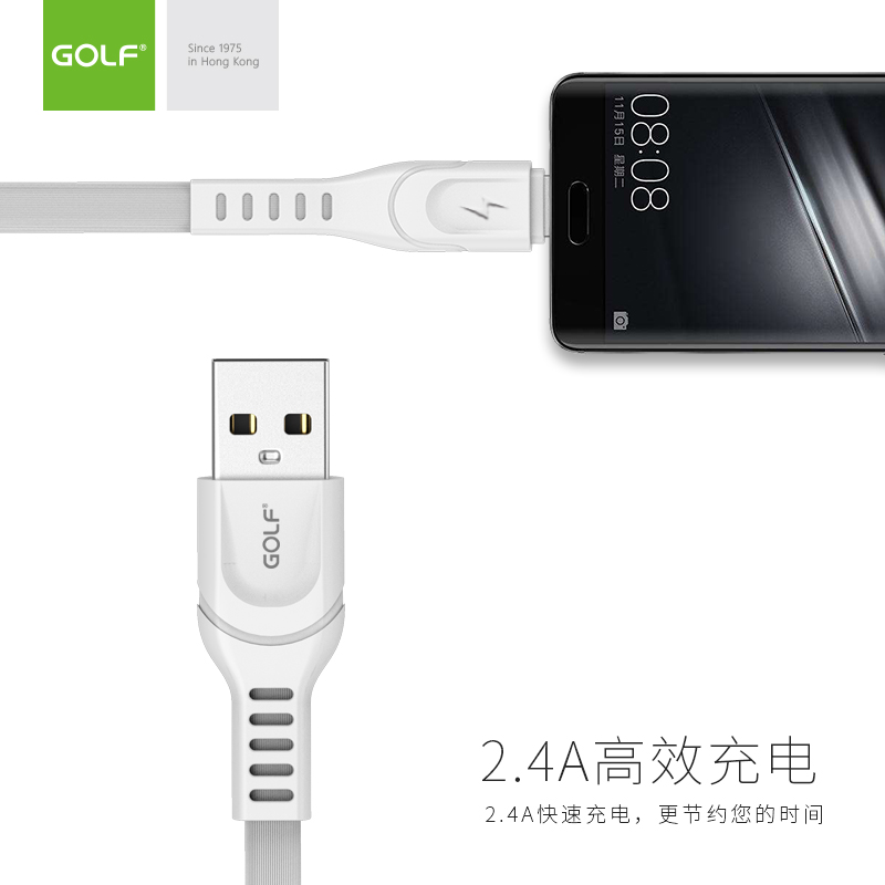GOLF 2.4a Type-c usb charging cable flat for mobile phone usb cable