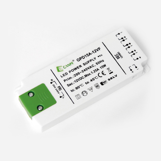GPD15A-12VF DC 12V 0-15W 0.5 -20-45℃ 80℃ 128*50*13.5mm TUV
