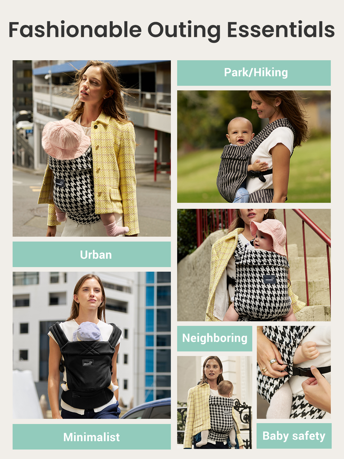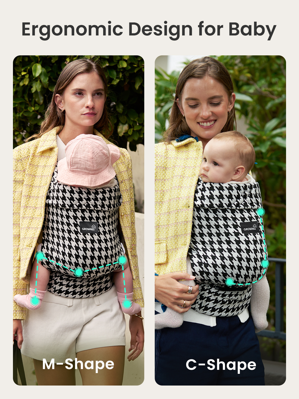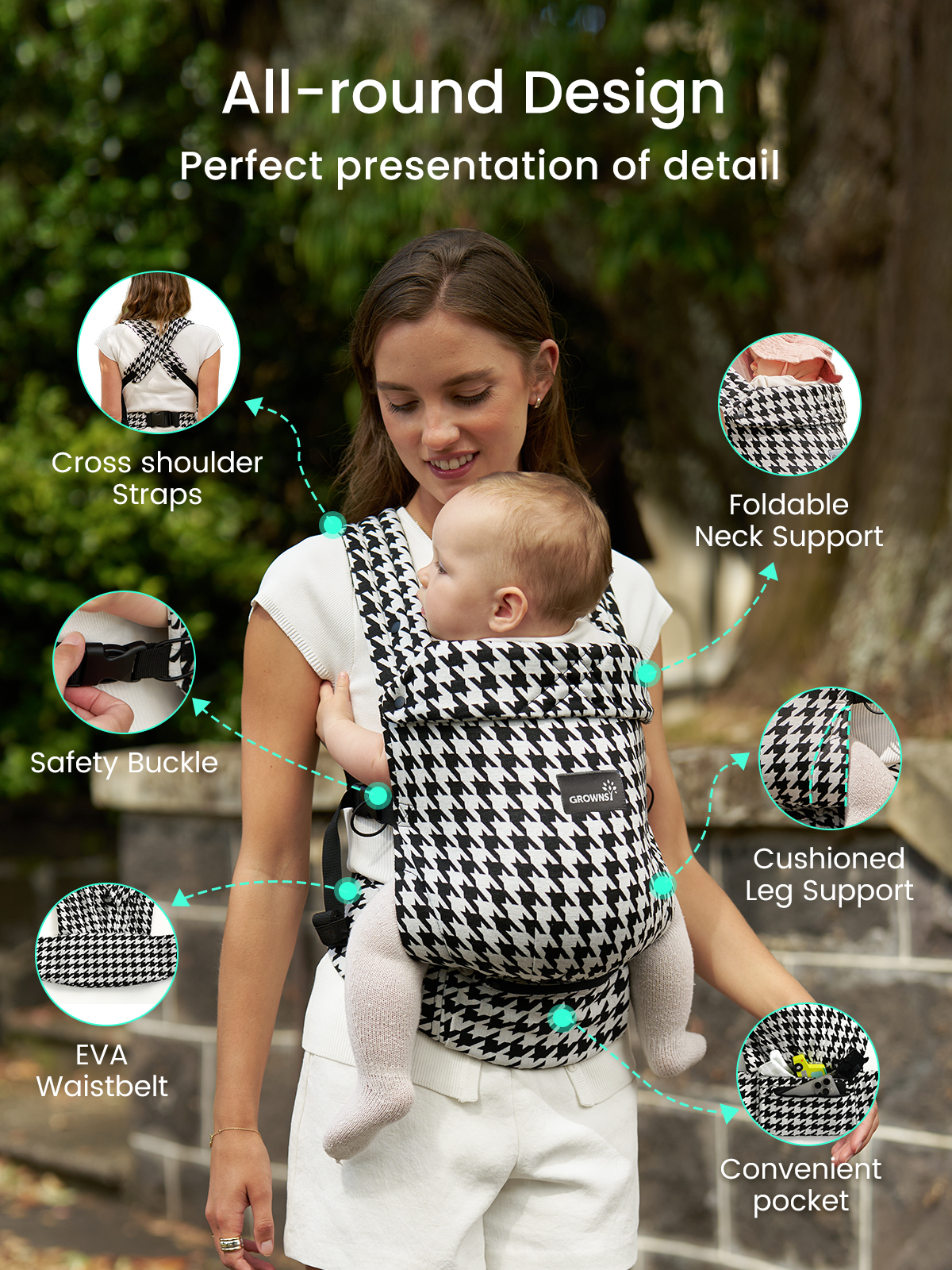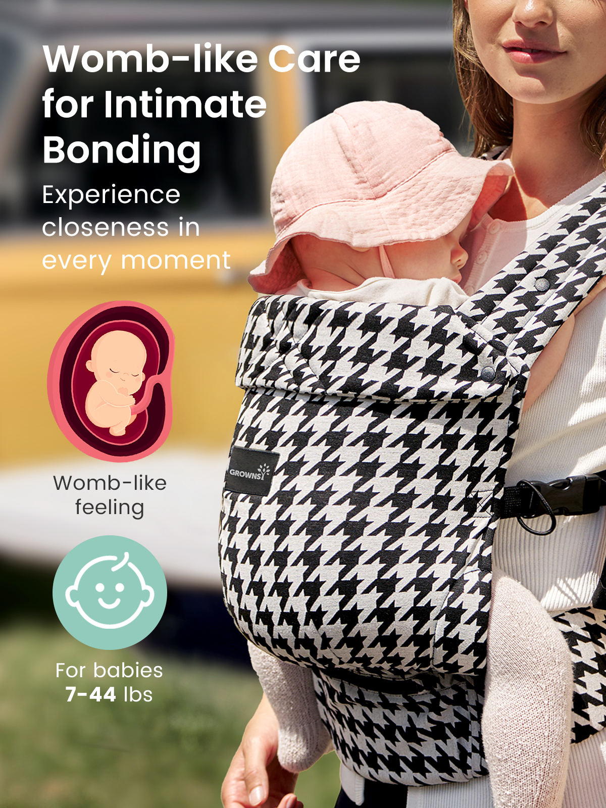 GROWNSY Baby Carrier Newborn to Toddler, Lightweight Ergonomic 7-44 lbs Newborn Carrier with Head Support, Easy to Wear Hands Free Infant Carrier for 0-36 Months, Houndstooth