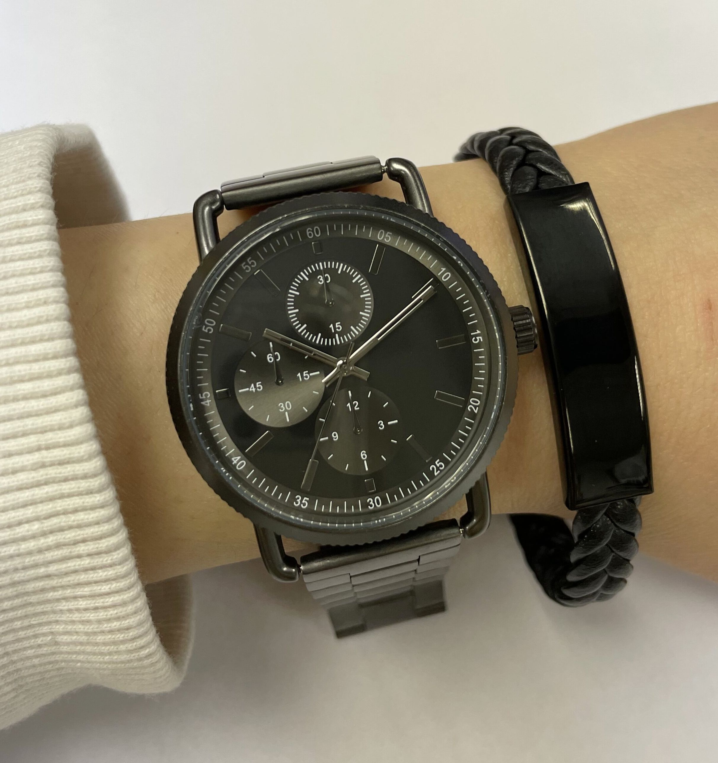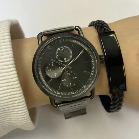 Alloy case with stainless steel band watch.