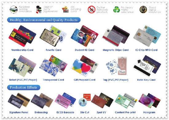 ManufacturerRounded / Square Corners, Pressure Line, Gloss / Matt / Frosted Varnish, Gold / Silver Card, UV Varnish, Photo Printing, Barcode Printing, Strip Punch etc…