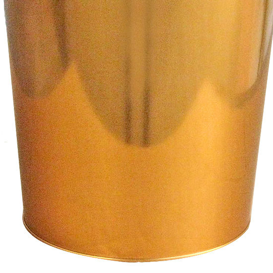 Replacing their conventional dull appearance, this golden bucket is an appealing choice as litter bin. The container is carefully molded, exhibiting clean lines with perfect smoothness. The durable tin can offers sheer practicality and accents the room at the same time.