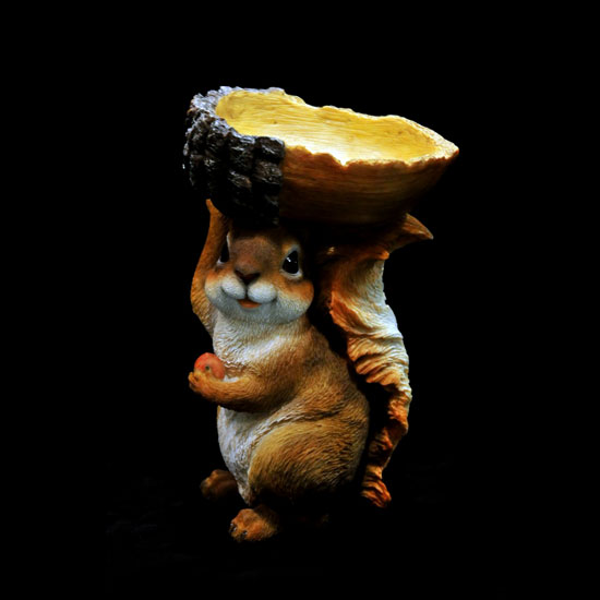 This garden decoration is especially designed and made according to a squirrel. The top-quality polyresin material is durable and offers an extra-long serving time. This decoration can also be used as a bird feeder.