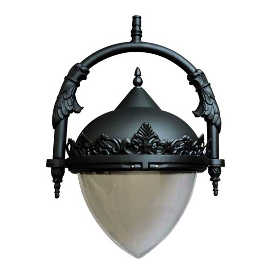 This vintage-style garden lamp features a die-cast aluminum body carved with alluring patterns. The cone-shaped white shell diffuses light in a soft and gentle way. The quality garden lamp boasts a long lifespan and requires little maintenance.
