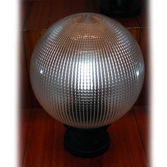 This garden lamp comes in a silvery global shape with ribbed details. It is well equipped with an LED bulb for bright and even illumination. The beautiful garden lamp is finished with a black round base that can stand on the ground firmly.