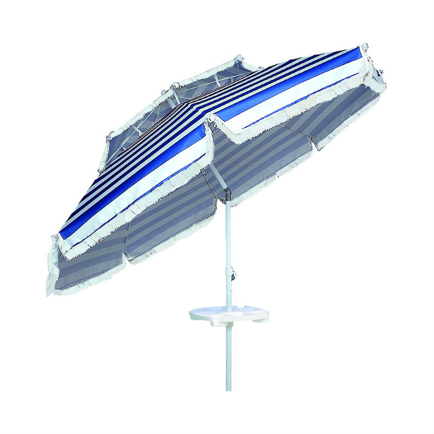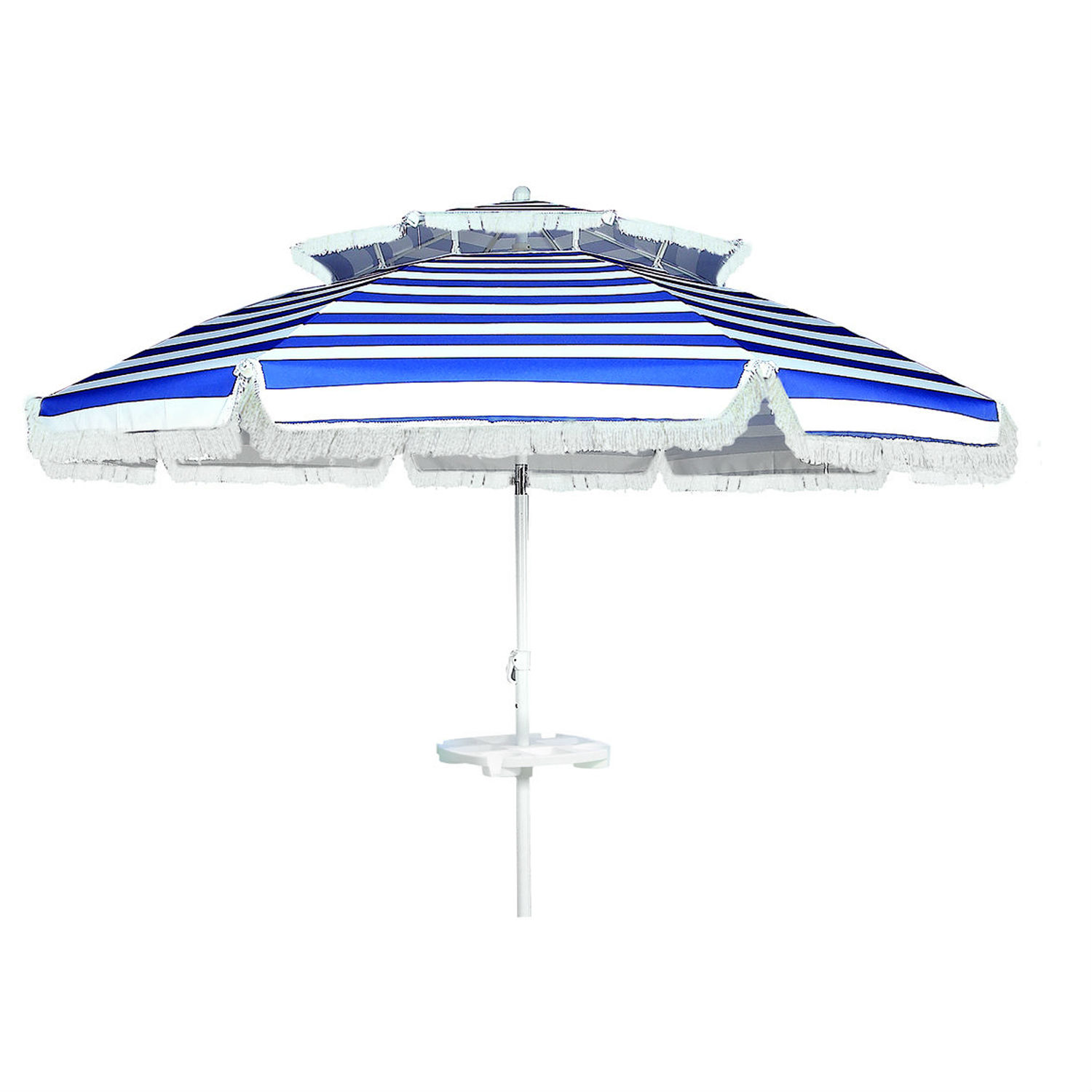 Highlighted here is a useful garden umbrella for shielding sunlight or drizzle while you are having tea outdoors. It possesses a canopy in a stipe pattern, while an extra, small canopy is featured atop to offer extra protection. Coming in a large size of 110 cm x 6k, this quality one can cover a couple of your friends.
