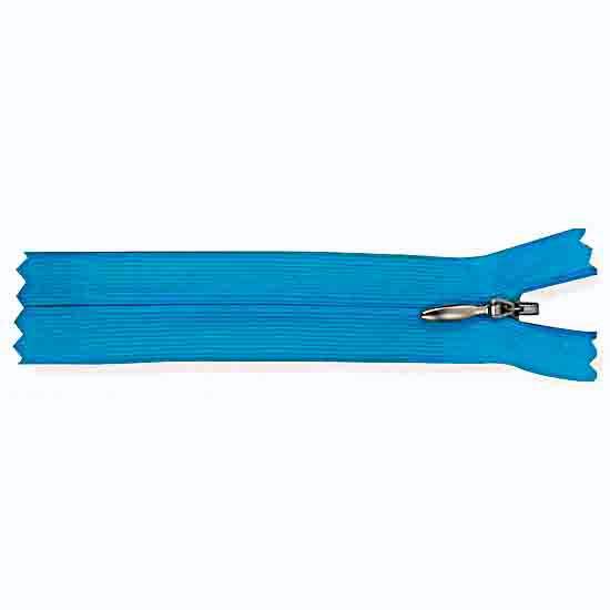 The garment zipper is finished in vibrant blue color for a unique touch. It features fabric tapes and a waterdrop metal slider. This pretty garment zipper makes an exceptional way to accessorize your garments and handbags.