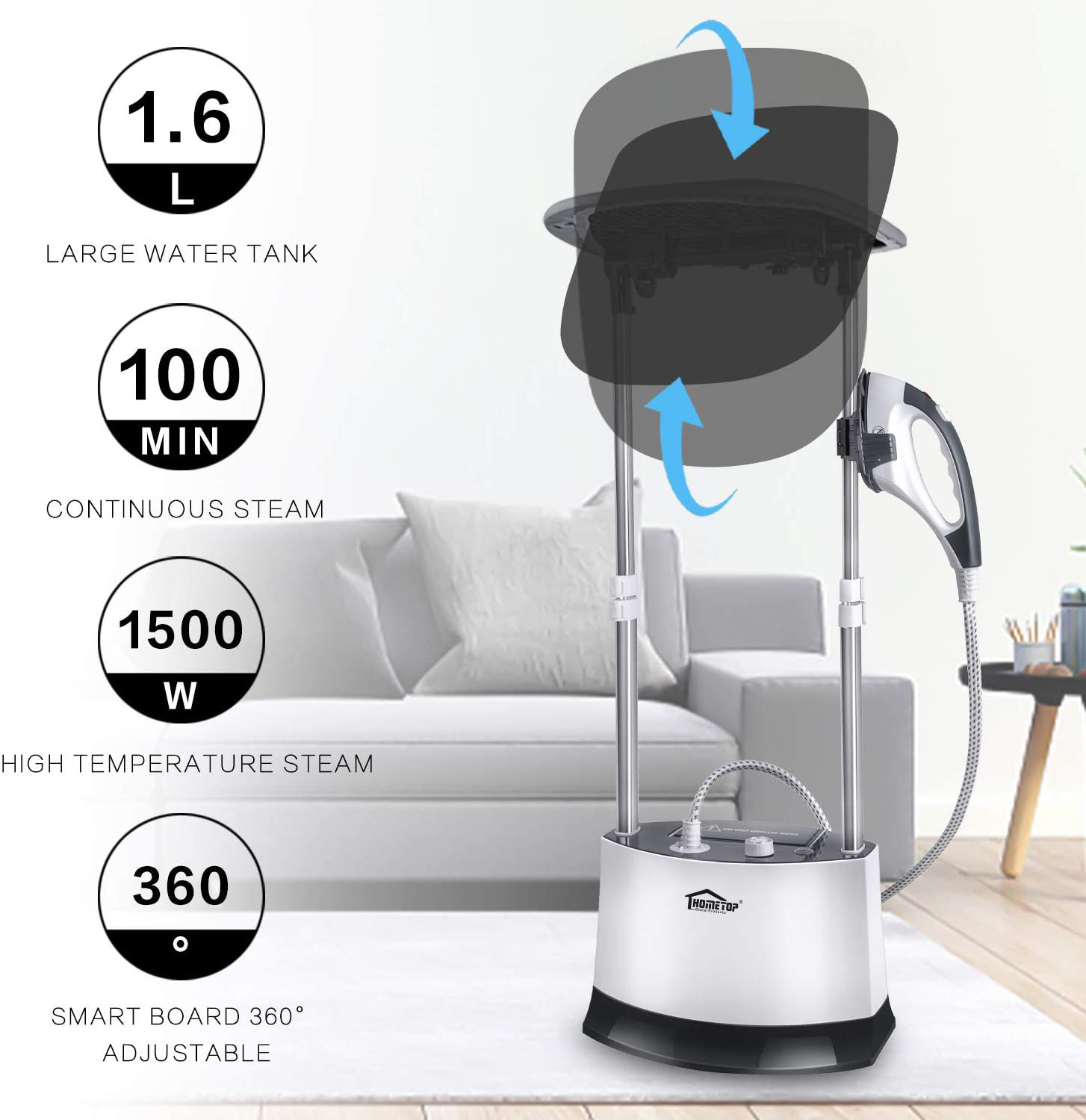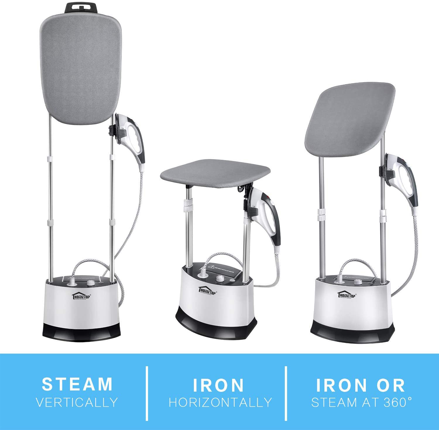 • Garment Steamer with 360 degrees adjustable smart board for ergonomic garment care, Flat for ironing, Vertical for Steaming.