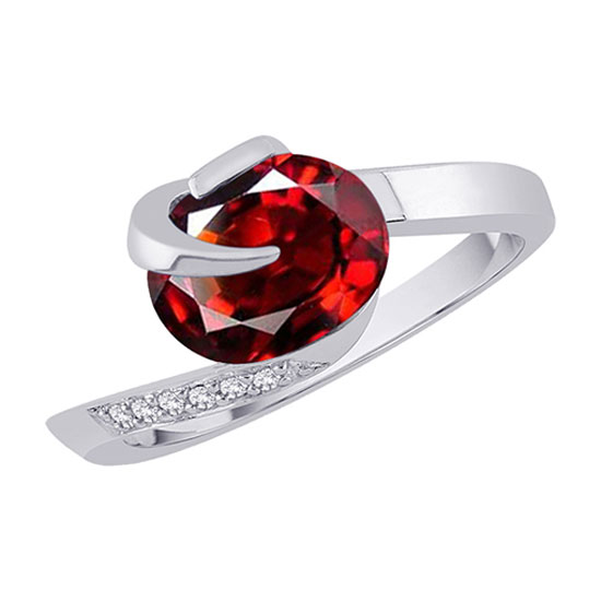 This garnet ring is exceptionally charming with its bright red glints. One shoulder is studded with sparkling white diamonds for an air of luxuriousness. This amazing piece of jewelry will delight you like no other.