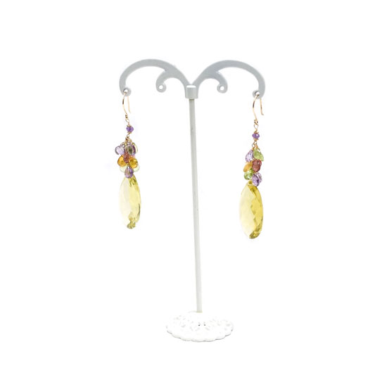 This is a pair of gem earrings that comes in a dangle style. Adorned with colorful gems, these earrings are elegant and dynamic. These high quality gem earrings are mounted on yellow gold to complete the regal look.