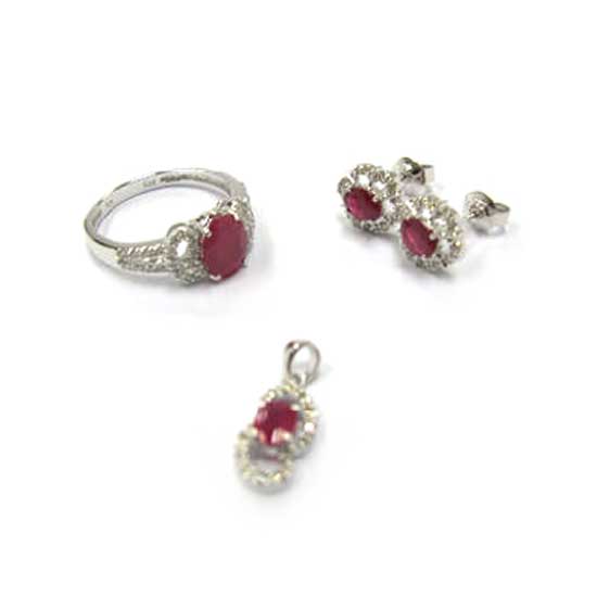 This is a series of gemset jewelry with an elegant and noble design. Each piece is crafted with a big red gemstone centerpiece. The sparkling elements make each piece look more appealing and charming.