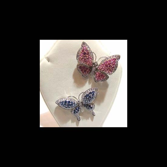 • Gemstone brooch set which consists a pink and a blue butterfly shaped brooches