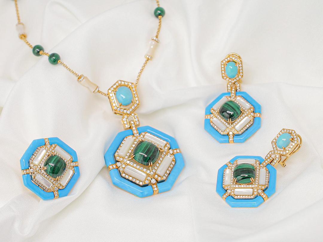 Emerald, Turquoise, mother of pearl & Diamond sets