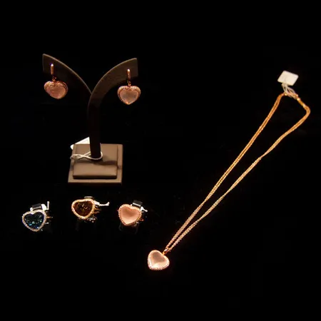 This charming gemstone jewelry set presents a sweet heart-shaped design. The simplistic, girlish design delights any woman. This delicate jewelry set can be worn in various occasions.