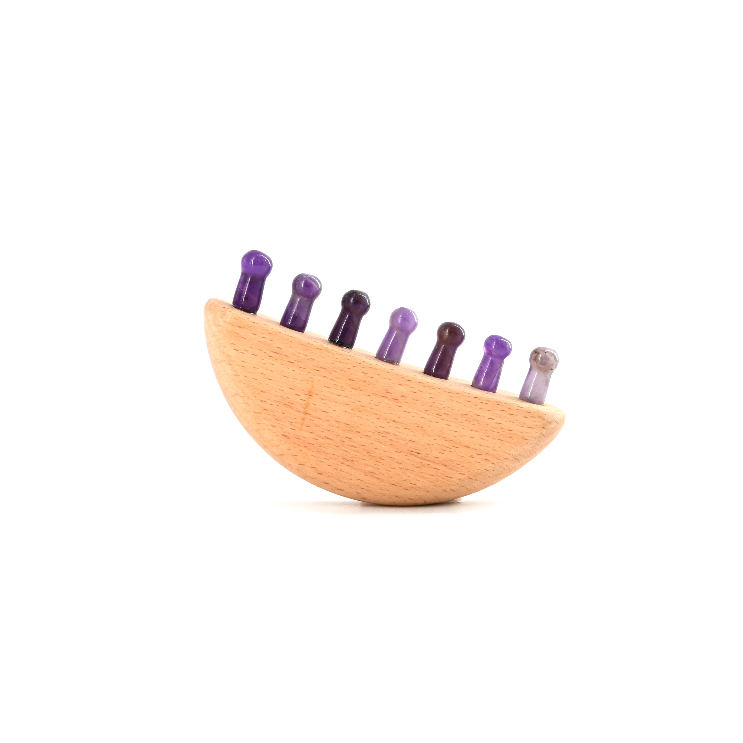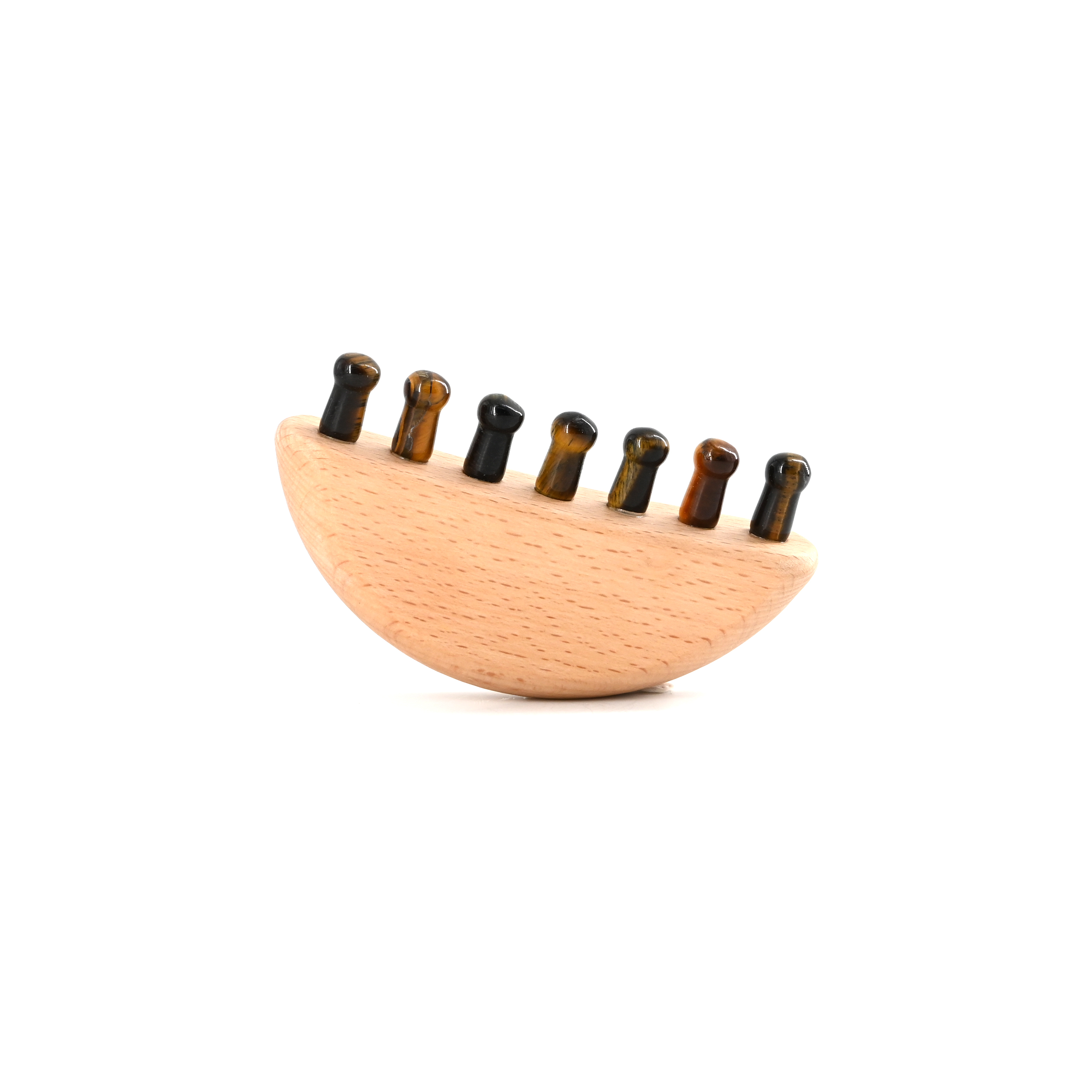 Premium gemstone massage comb with polished stone teeth and smooth wooden handle. Ideal for hair care, acupressure, and relaxation therapy.