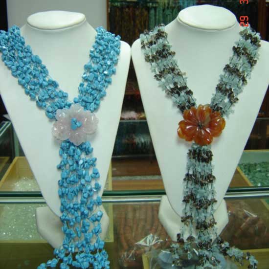 The gemstone necklace shows a glamorous multi-stranded design. The eye-catching floral embellishment gives a stylish touch. Add an elegant flair to your look with this necklace.