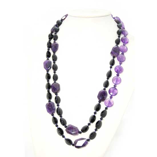 Flaunting an alluring and charming touch, this necklace features a melange of black and purple gemstones including onyx and faceted amethysts. The endless style is one the main reasons that you should keep this timeless piece in your jewelry collection. You may wear this extra-long necklace at various lengths to suit your unique look.
