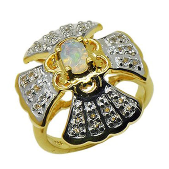 - With an Ethiopian opal centerpiece and white topaz stones.