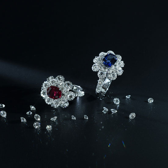 - The gemstones enclosed with high quality dazzling diamonds and flaunting irresistible beauty.