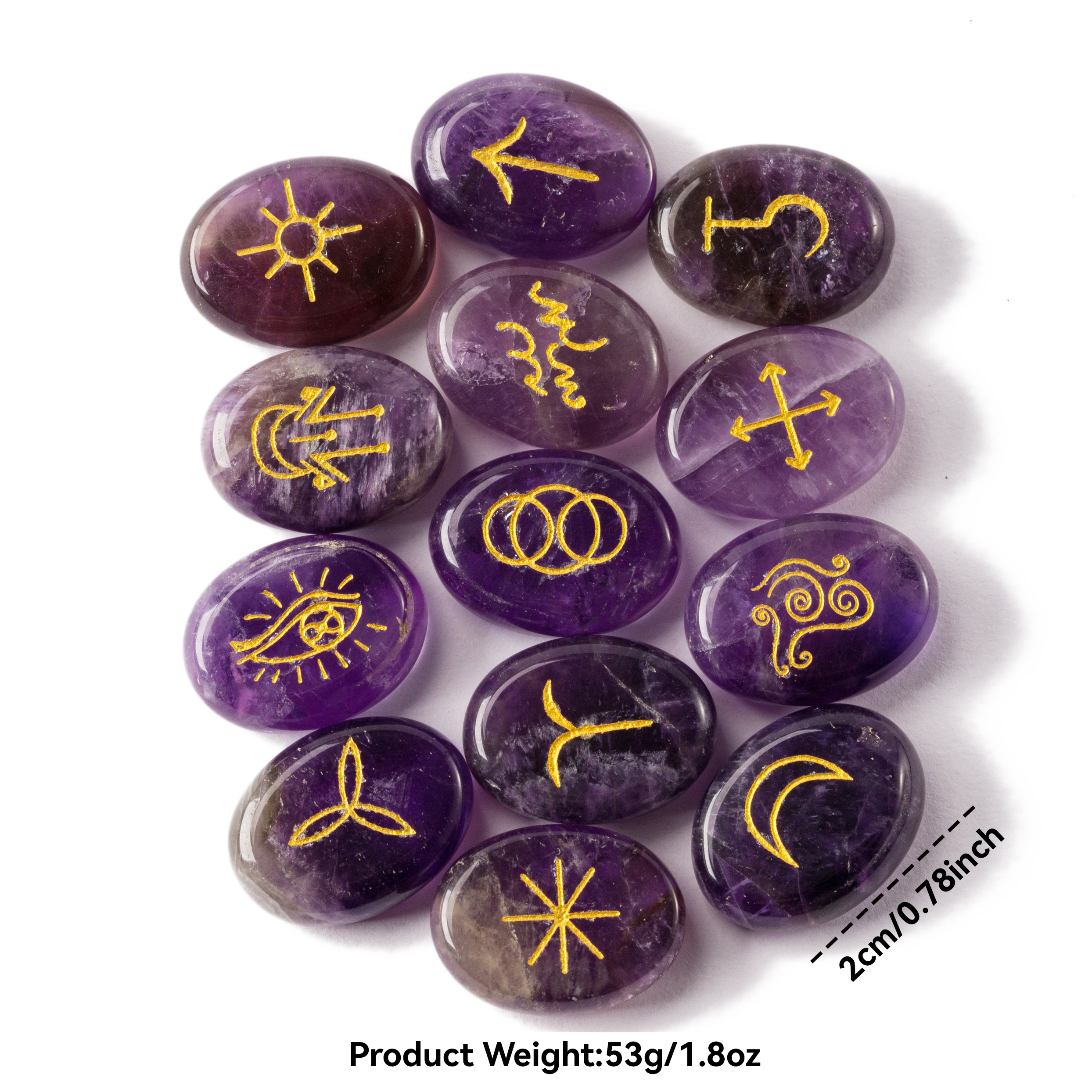 Tiger Eye Rune Stones Amethyst and Jade Carving in Yellow Gemstone Mixed Material for Decor Souvenir and Healing