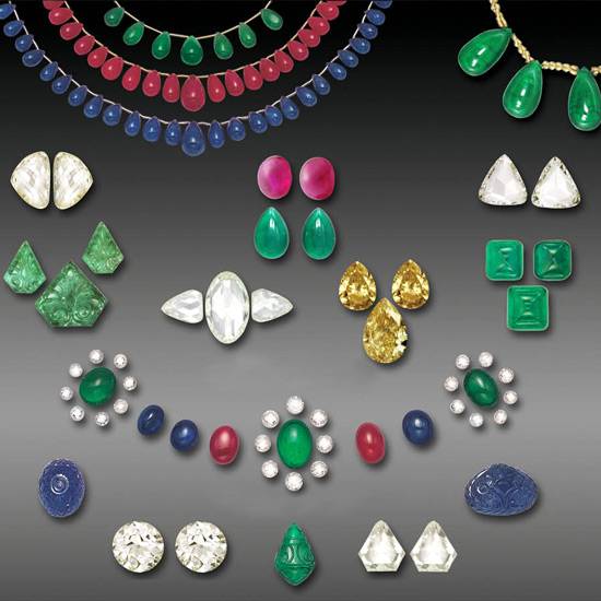 These are various kinds of gemstones. They include jade, tourmaline, ruby and diamonds. They are well cut in different shapes such as marquise, pear, princess, oval and trillion.