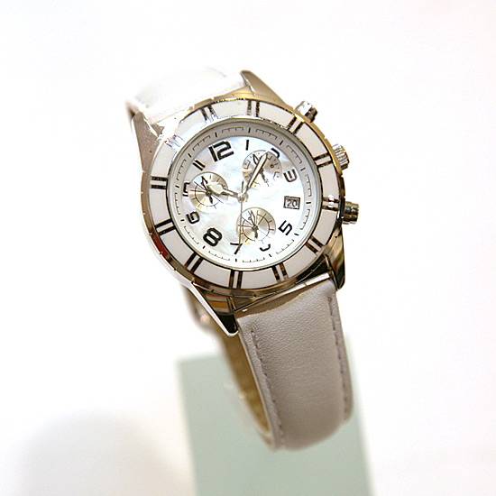 This is a gen's chronograph with stainless steel case and white leather strap. With simple yet elegant style, this gen's chronograph is also suitable for ladies. With timeless design, this watch is easy to be matched with all outfits.