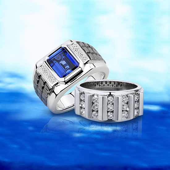 The captivating sapphire is the masterpiece of this special ring for gentlemen. With it faceted surface where light gleans off in all angles, the luxurious surface of this white gold ring is complemented by channel-set diamonds aligned in vertical columns. More than just a memorable gift jewelry choice, this lovely ring complements both your chic and professional attire for different occasions with equal style.