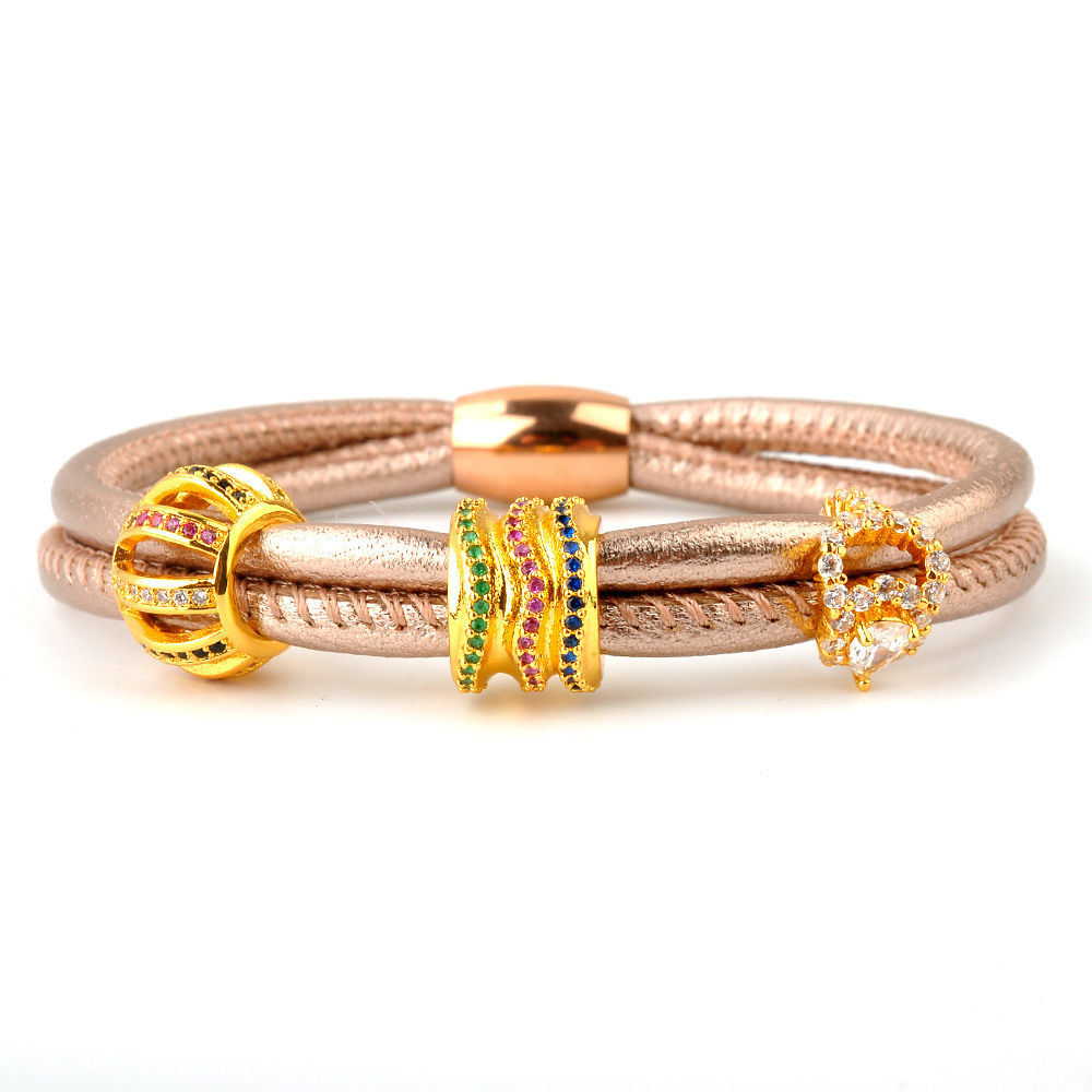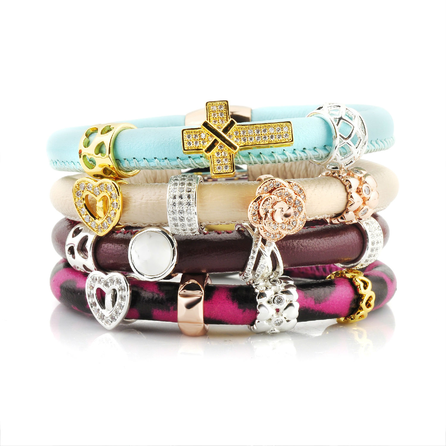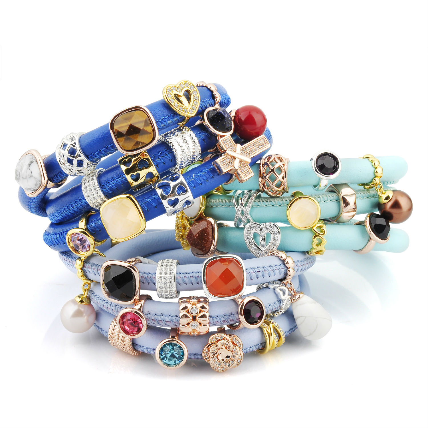 • Genuine Nappa leather wrap bracelets for women with multi designs slider charms
